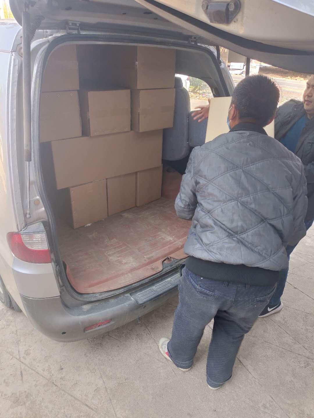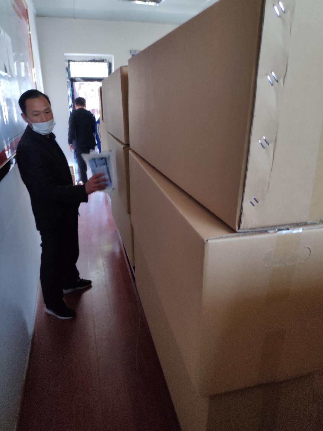2020年4月12日上午,東昱集團下屬子公司森海商貿將采購的一次性醫用口罩16萬只送達杜集區教育局指定地點交付使用。