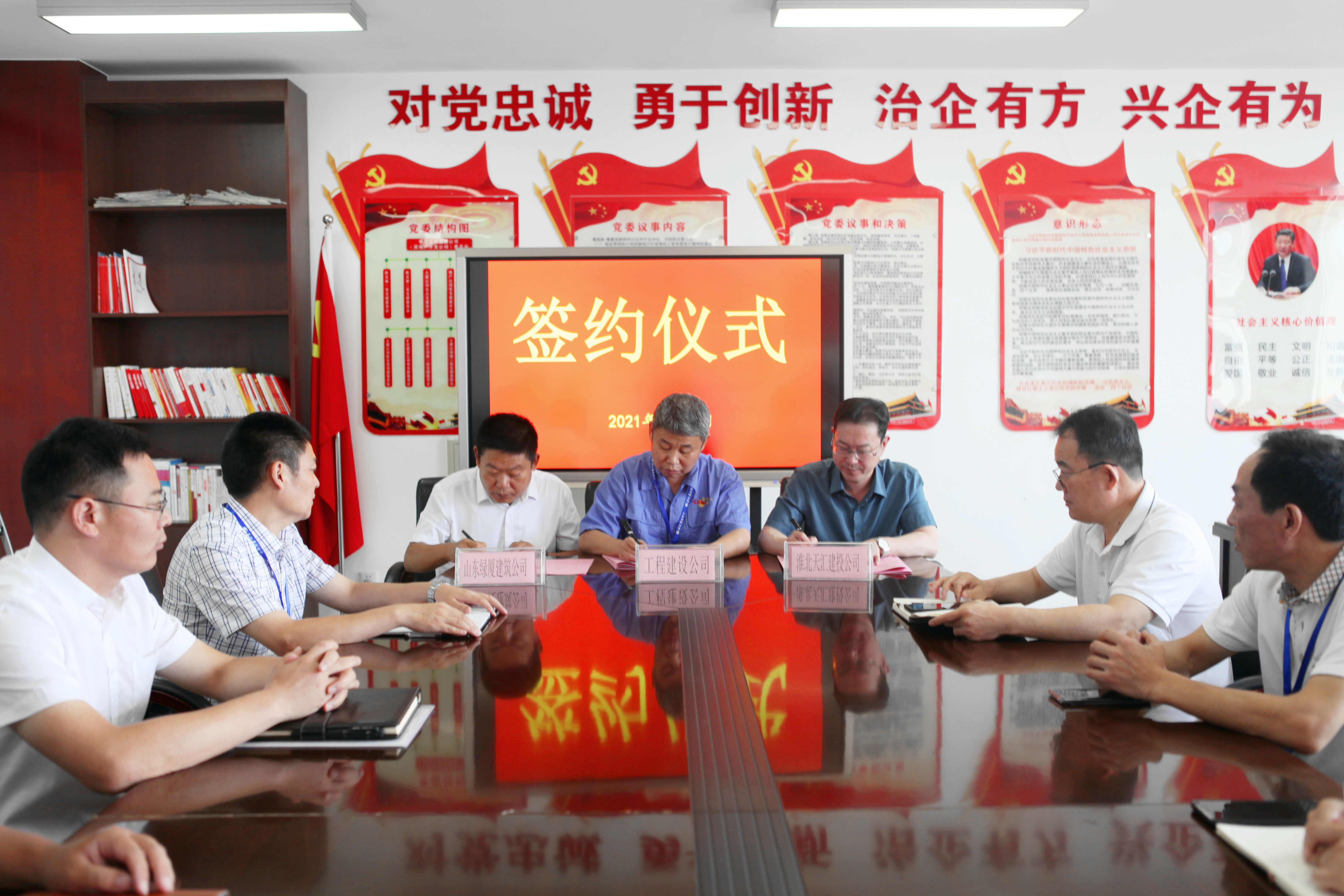 30 07月2021 了解詳情 天匯建投與淮北礦業(集團)工程建設有限責任公司、山東綠廈建筑科技有限公司簽署《投資合作意向書》 7月30日上午,集團公司與淮北礦業(集團)工程建設有限責任公司、山東綠廈建筑科技有限公司就合資成立新公司簽署《投資合作意向書》,集團公司董事長李飛出席此次簽約儀式。